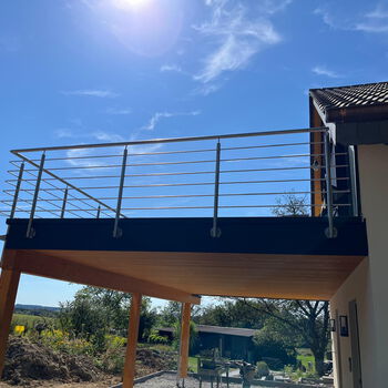 Unsere Balkonkonstruktionen werden wahlweise feuerverzinkt oder in Wunschfarbe beschichtet und sind als vollständig abgeschlossenes System mit passendem, ebenfalls aus einer Hand gefertigtem Geländer erhältlich. So entstehen robuste, pflegeleichte und optisch ansprechende Lösungen, die sich harmonisch in jedes Gebäude integrieren.